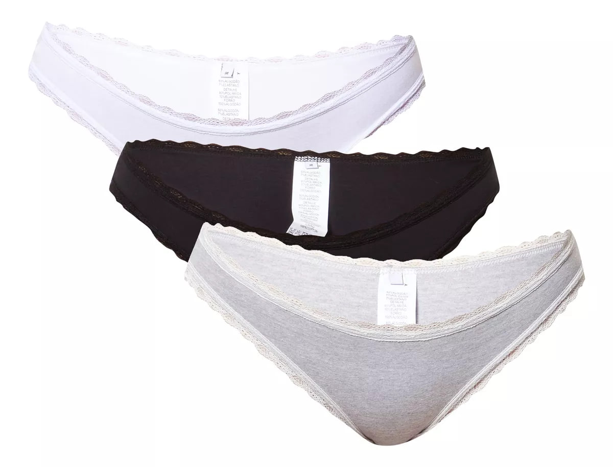 Kit Com 03 Calcinhas Feminina Tanga Algodão Elastano Hering