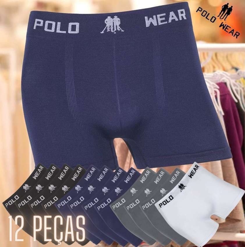 Kit com 12 Cuecas Boxer Microfibra Poliéster Polo Wear