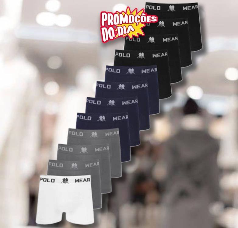 Kit Com 12 Cuecas Boxer Microfibra Polo Wear