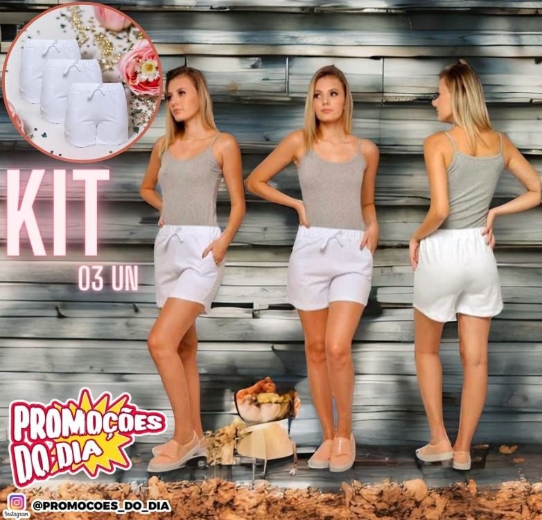 Kit com 3 Shorts de Moletom Style Feminino (P e M)