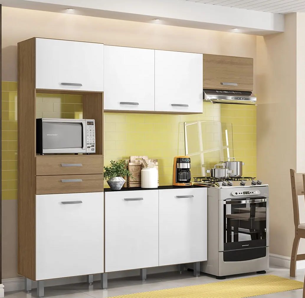 Kit Cozinha Poliman Móveis Lia com Balcão – Nicho para Micro-ondas 7 Portas 2 Gavetas