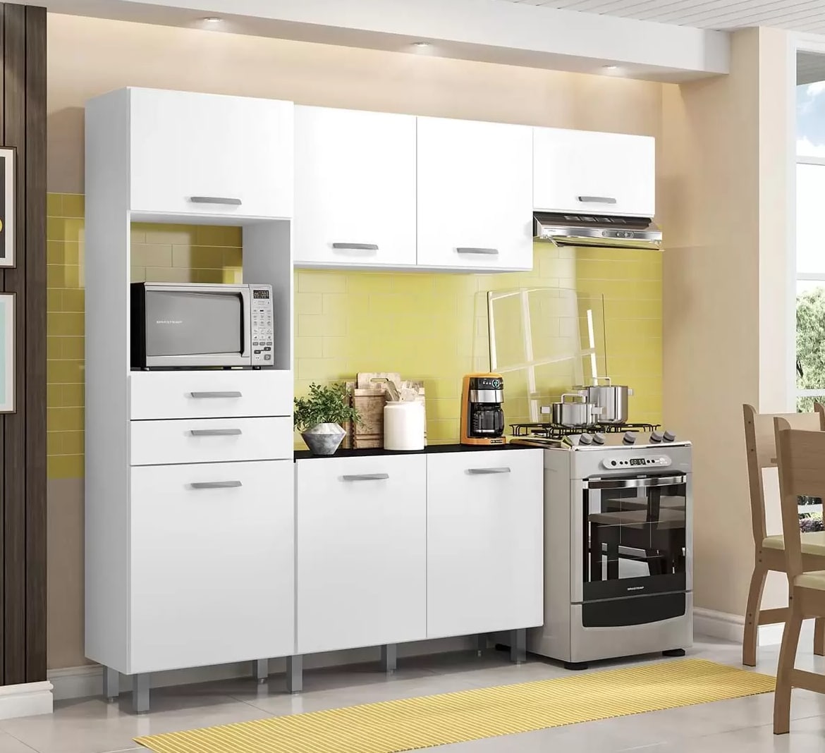 Kit Cozinha Poliman Móveis Lia D15200 com Balcão – Nicho para Micro-ondas com Tampo 2 Gavetas