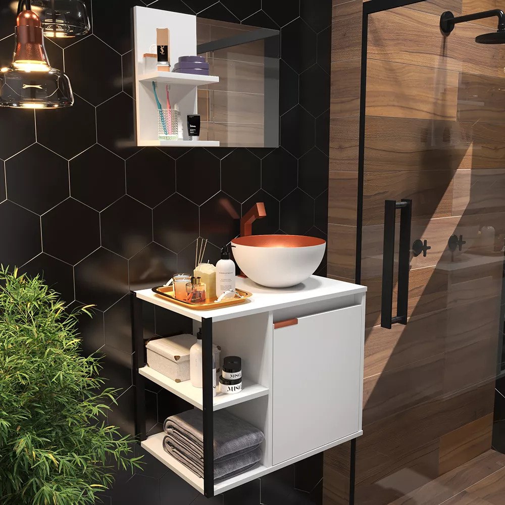 Kit De Banheiro Armário Lateral Com Estrutura De Ferro E Espelheira Estilo Design Industrial