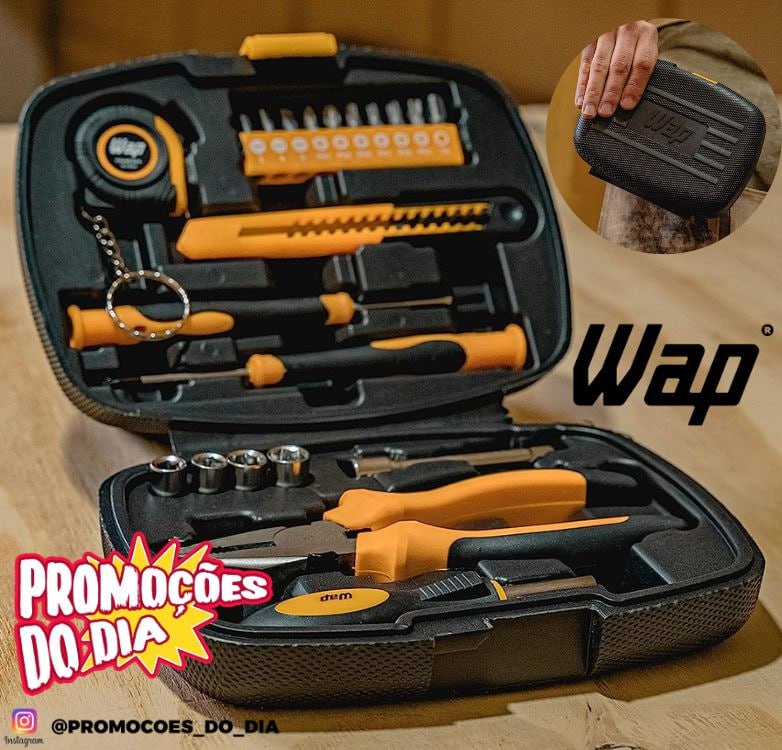 Kit de Ferramentas WAP MKF21 com Trena, Chaves, Estilete, Alicate, Maleta – 21 Peças