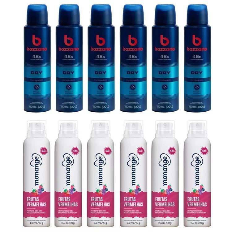 Kit Desodorante Monange ou Bozzano Aerossol Antitranspirante 150ml – 6 unidades