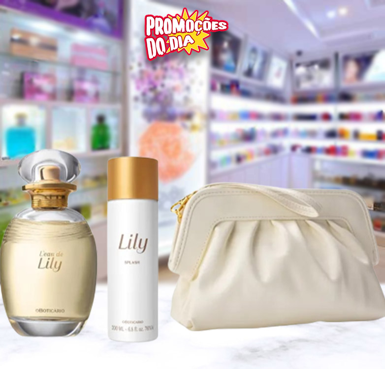 Kit o Boticário LiLy Fragrância + Splash + Bolsa Clutch