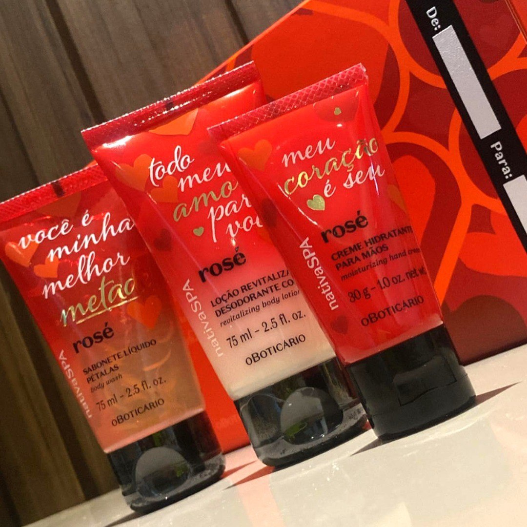 Kit Presente Nativa SPA Rosé Eu Te Amo: Loção Revitalizante 75ml + Creme para Mãos 30g + Sabonete Líquido Corporal 75ml