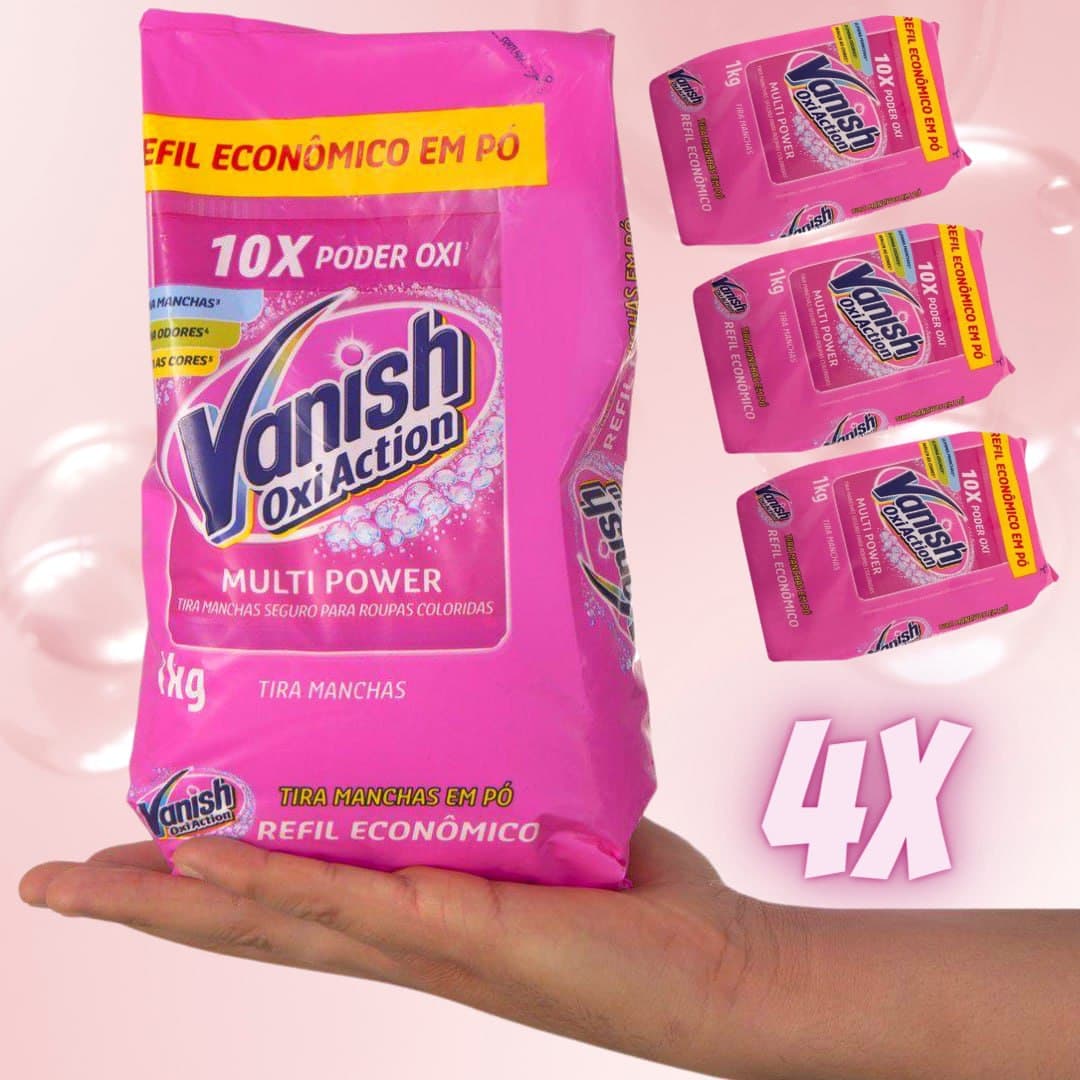 Kit Tira Manchas Vanish Oxi Action – Multi Power em Pó Refil 1Kg 4 Unidades