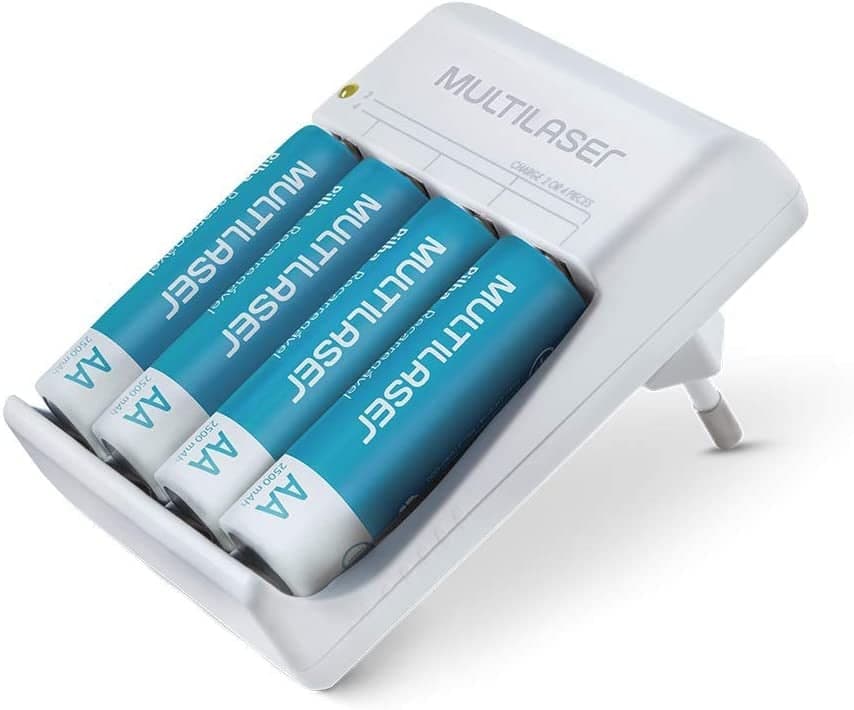 Carregador de Pilhas Multilaser AA/AAA + 4 Pilhas AA 2500Mah – CB054, turquoise