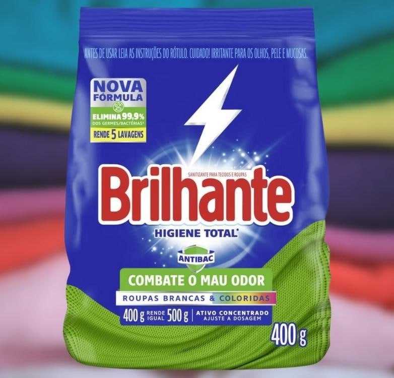 Lava-Roupas Em Pó Roupas Brancas E Coloridas Brilhante Higiene Total Pacote 400G, Brilhante