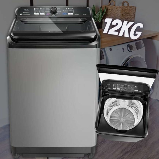 Lavadora de Roupas Panasonic NA-F120B1TA – 12Kg Cesto Inox 8 Programas de Lavagem Titânio