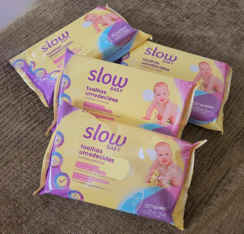 Lenços Umedecidos Com Fórmula Suave, Pacote com 48 unidades, Linha Slow Baby, Lanossi.
