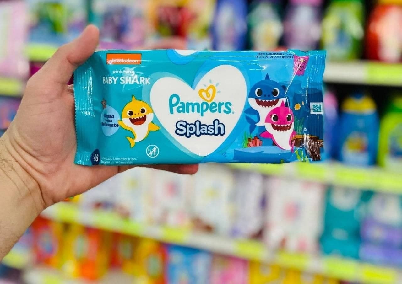 Lenços Umedecidos Pampers Splashers Baby Shark 48 Unidades