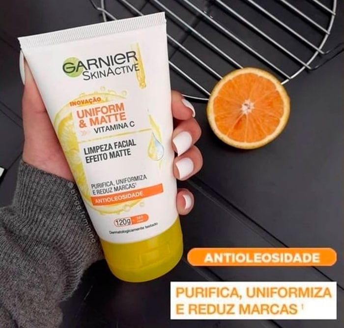Limpeza Facial Garnier Uniform & Matte Vitamina C Antioleosidade, 120g