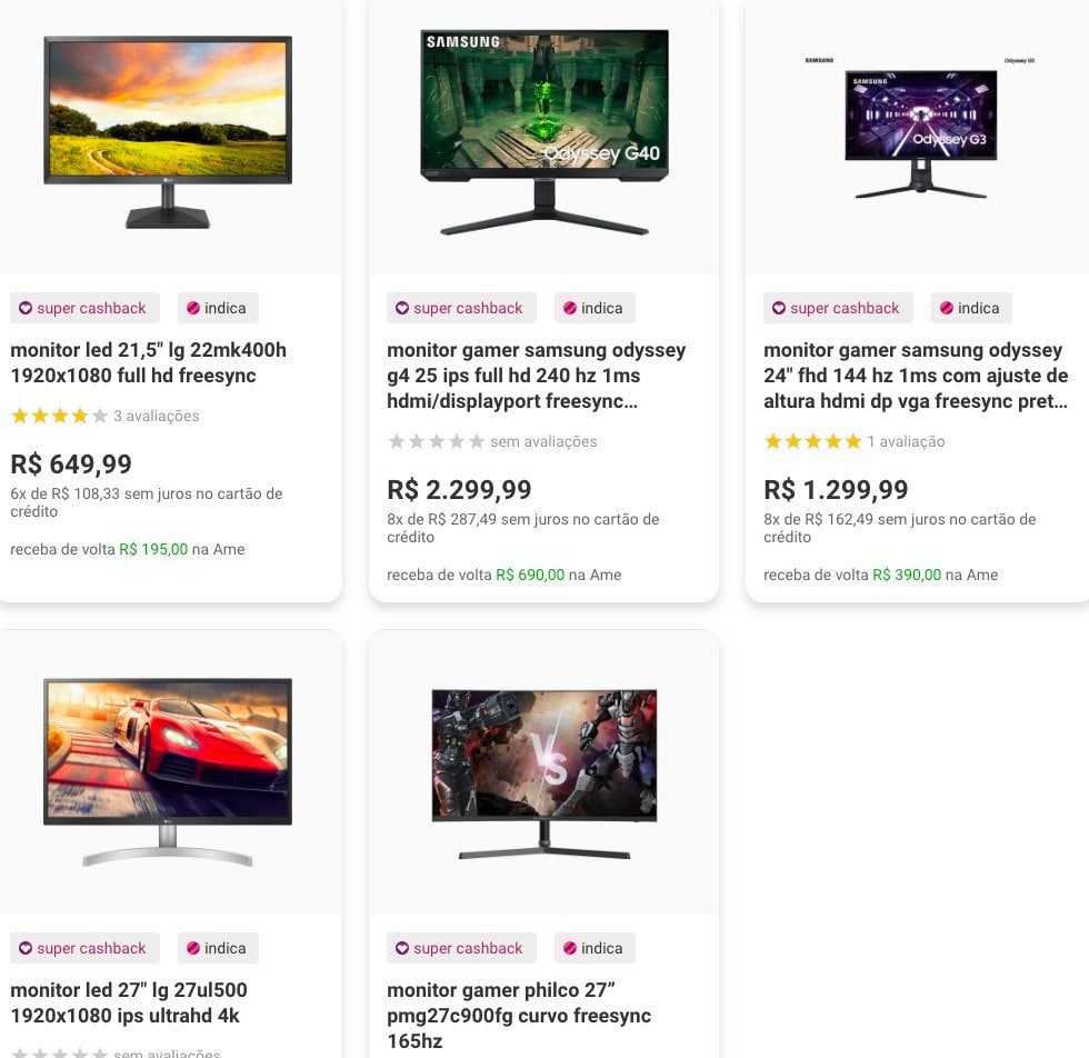 Lista de monitor gamer na Shoptime com retorno de 30% na ame