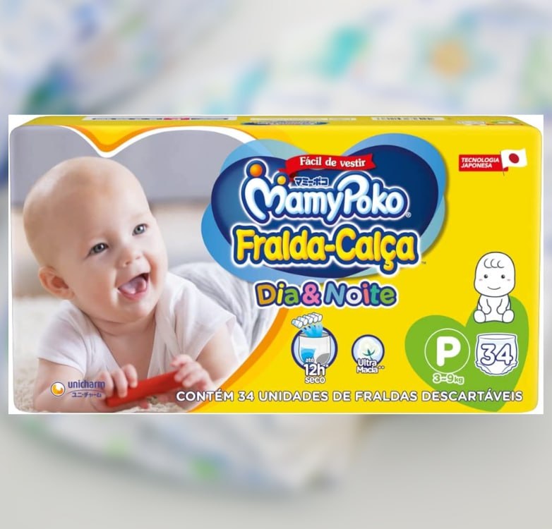 MamyPoko Fralda-Calça Dia&Noite Tamanho P, embalagem Jumbinho, 34 unidades, Branco