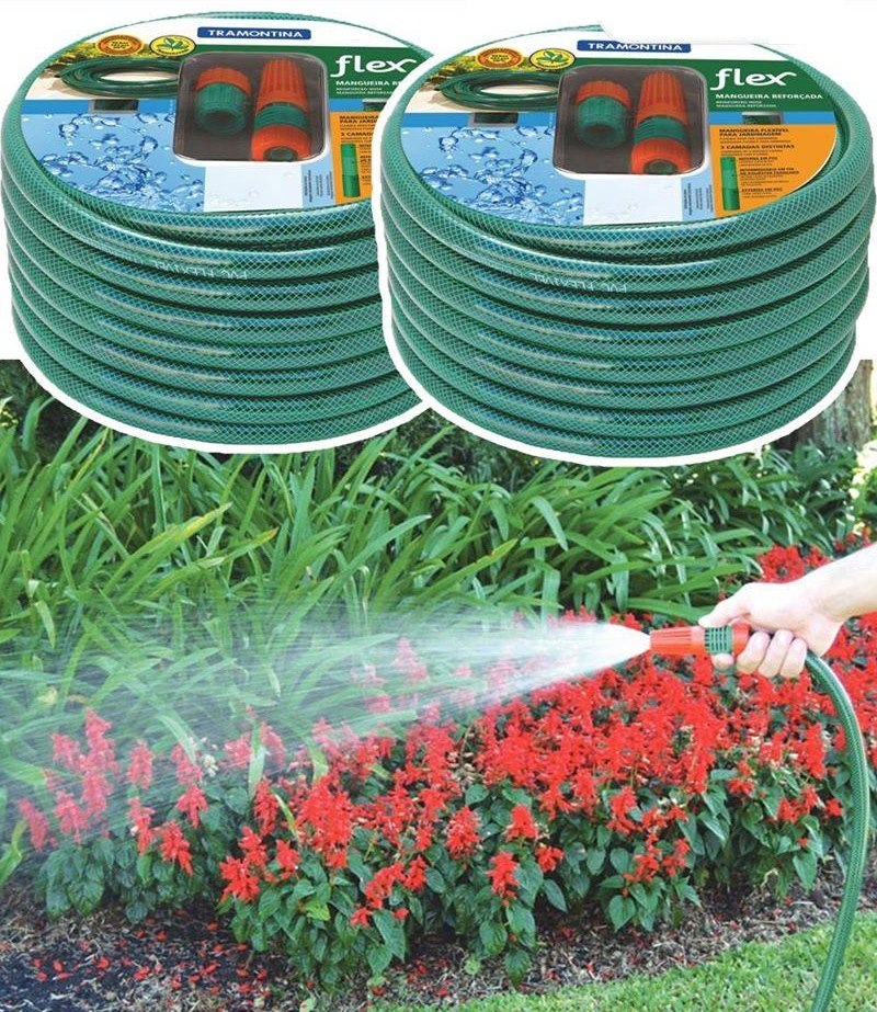 Mangueira Flex Tramontina Com Engates Rosqueados E Esguicho Em Pvc Verde 15 M