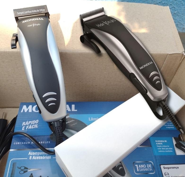 Máquina de Cortar Cabelo Mondial Hair Stylo CR-02 4 com Pentes – Prata/Preta