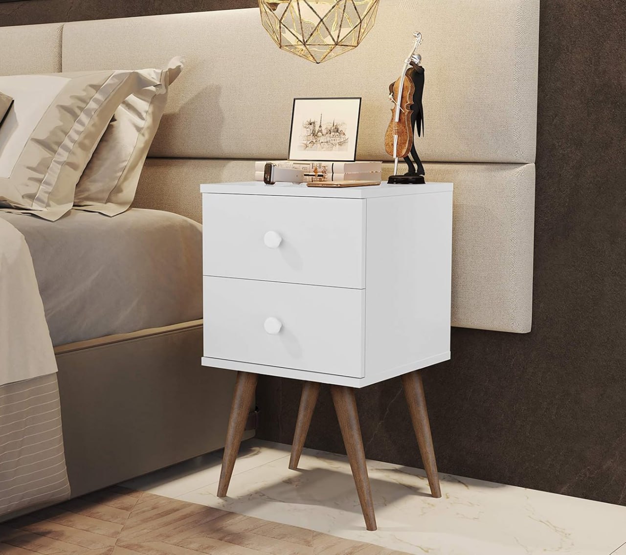 Mesa De Cabeceira com 2 gavetas Retrô Candy – Branco – TuttiCasa