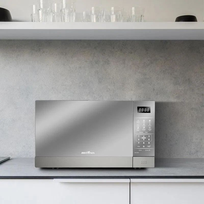 Micro-ondas Britânia 28 litros Inox Espelhado Branco BMO28IEB – 220 Volts