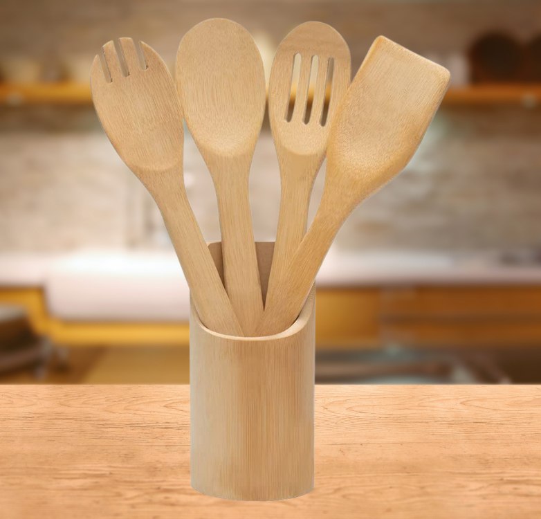 Mimo Style Kit de Utensílios 5 Peças Ecokitchen, Produzido em Bambu 100% Ecológico