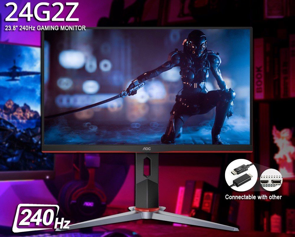 Monitor Gamer AOC HERO Z 240Hz 0, 5ms IPS G-Sync Compatible – 24G2Z, Preta/Vermelho