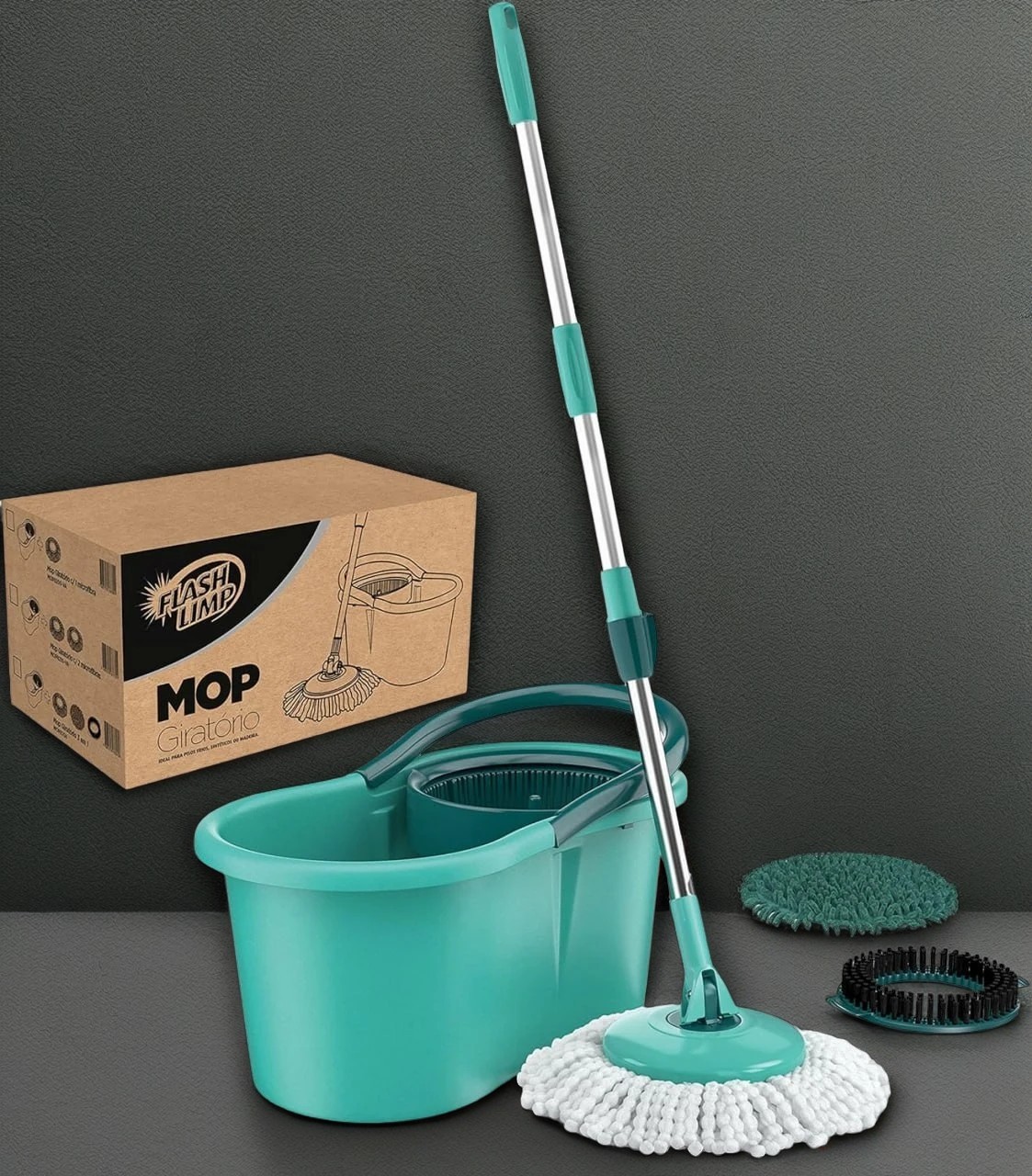 Mop Giratório 3 em1, balde com 12 litros e 3 opções de Refis