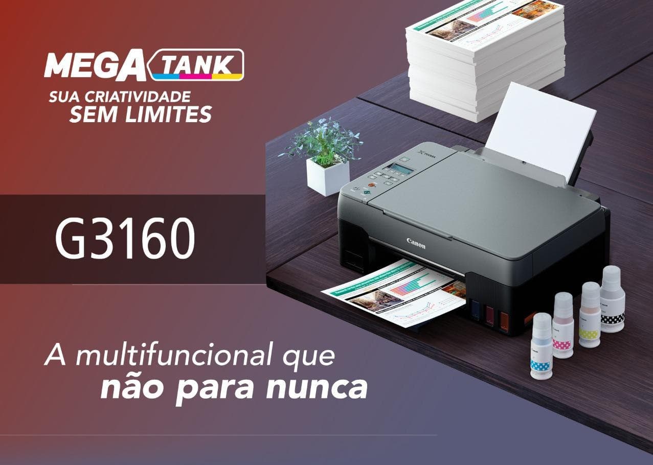 Multifuncional Canon Mega Tank G3160 Preta