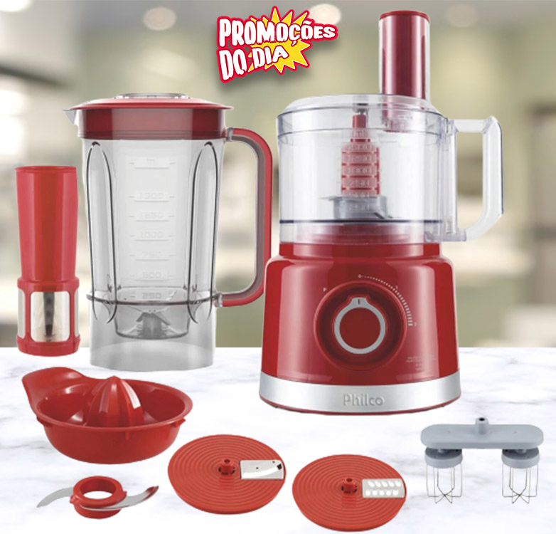 Multiprocessador de Alimentos Philco PMP1550V Pro Turbo com 2 Velocidades + Pulsar 900W – Vermelho
