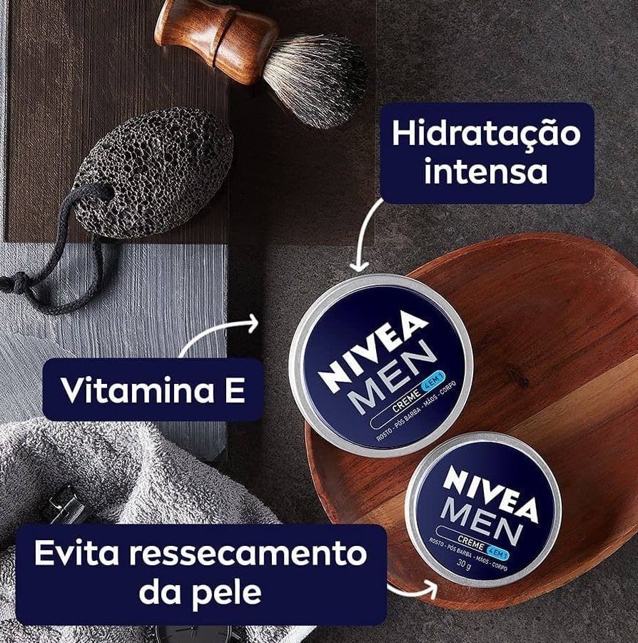 NIVEA MEN Creme 4 em 1 75g – Hidratação intensa, evita ressecamento, com vitamina E, textura creme, rápida absorção