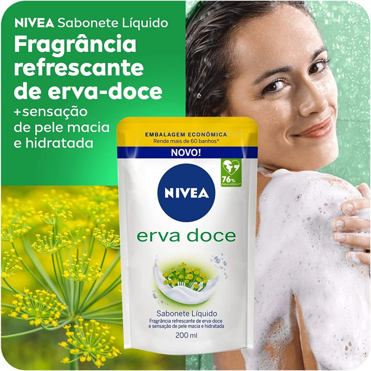 NIVEA Sabonete Líquido Refil Erva Doce 200ml , Fragrância refrescante de erva-doce, sensação de pele macia e hidratada