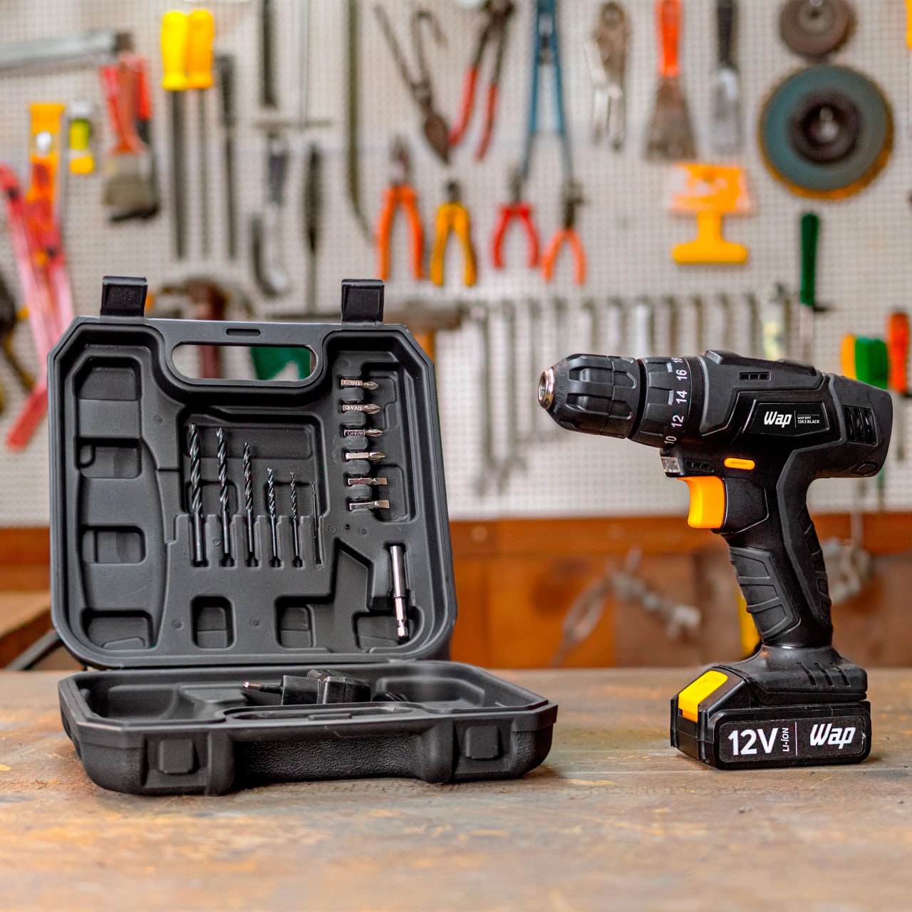 Parafusadeira e Furadeira Wap BPF 12K3 Black a Bateria Li-Ion 12V Carregador com Maleta e Kit de 13 Acessórios – Bivolt
