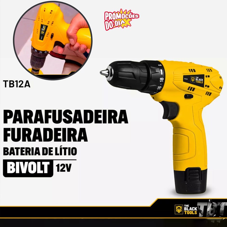 Parafusadeira Furadeira 3/8 Bivolt A Bateria 12v Cor Amarelo Frequência 60Hz 110V/220V