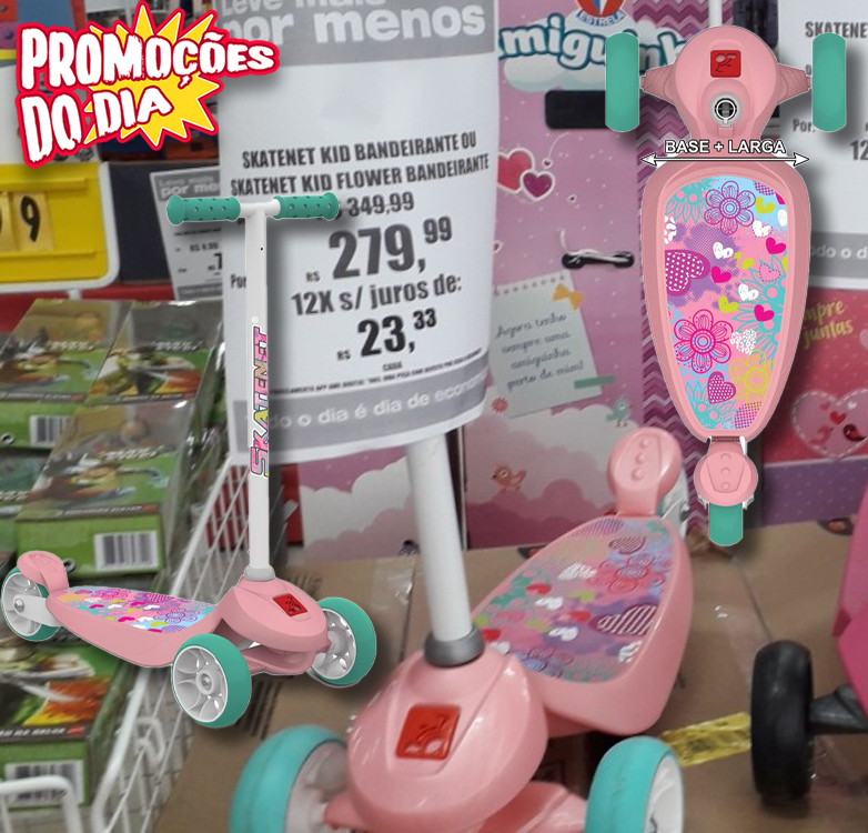 Patinete Skatenet Bandeirante Kid Flower – Rosa