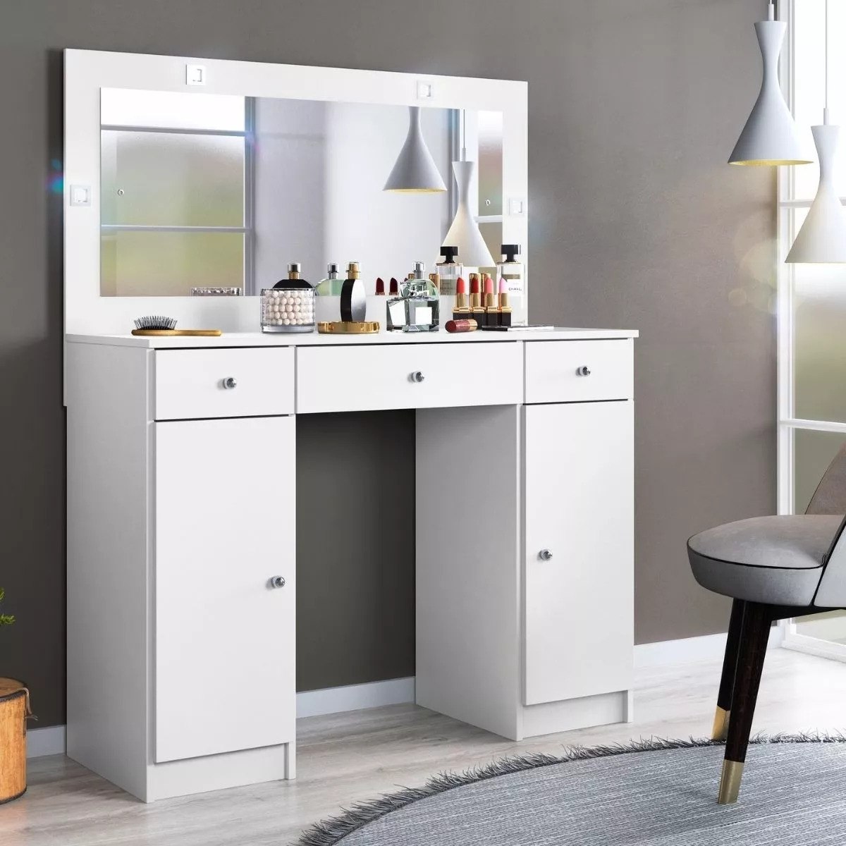 Penteadeira Camarim Com Espelho 3 Gavetas 2 Portas H Cor Branco