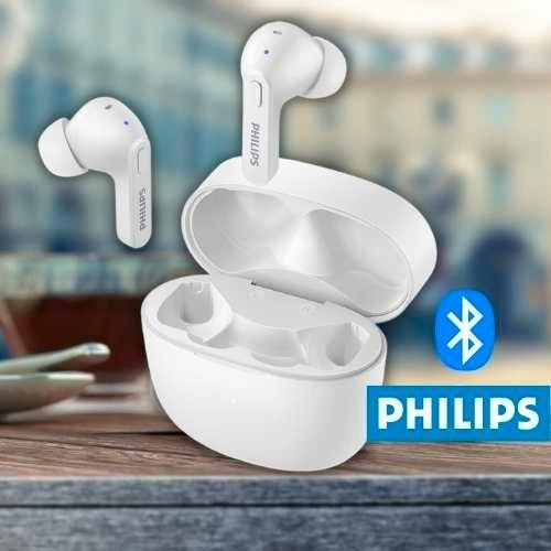 PHILIPS Fone de ouvido sem fio TWS bluetooth com microfone, formato em haste, IPX4 e energia para 18 horas totais na cor branca TAT2206WT/00, padrão