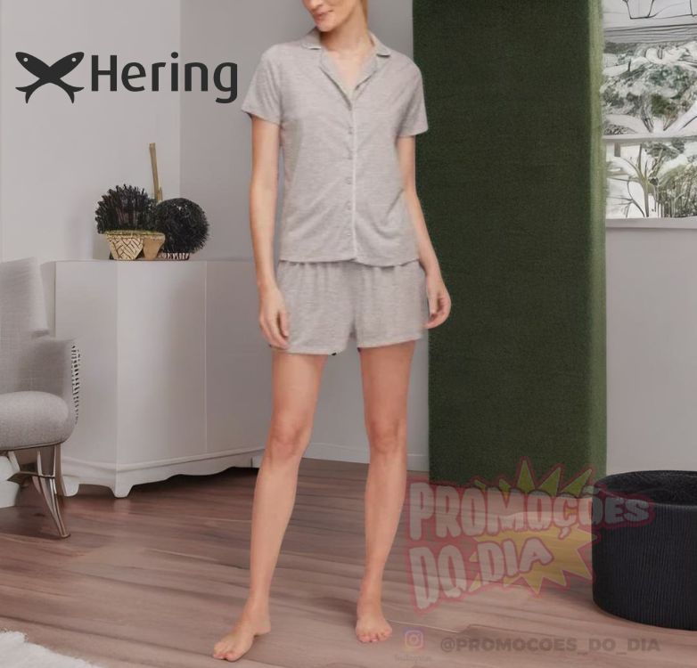 Pijama Curto Feminino Com Botões – Cinza Hering