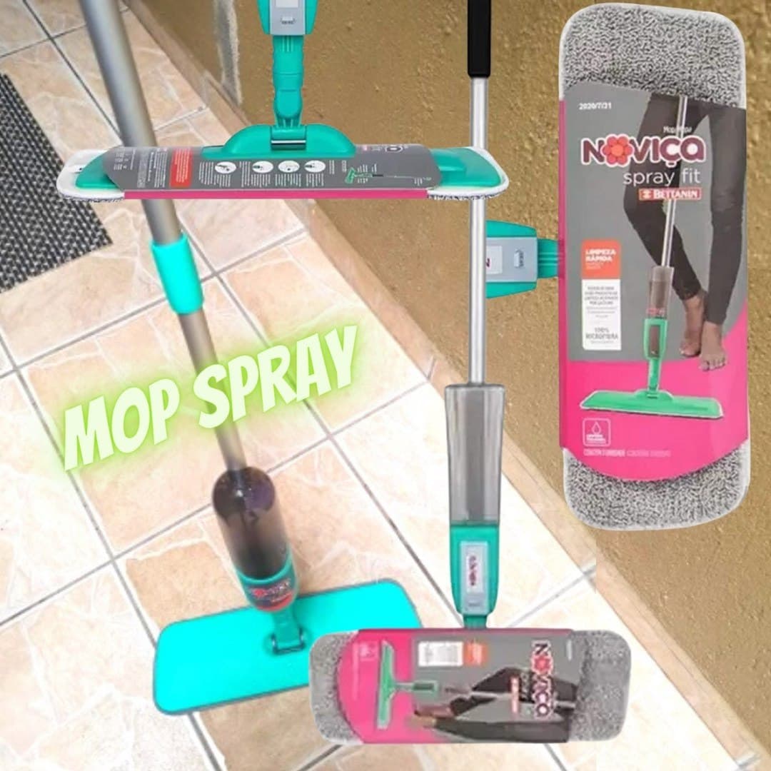 Mop Spray Fit para Limpeza Rápida, Cor Cinza e Verde, Linha Noviça, Bettanin