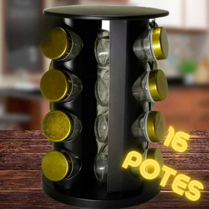 Porta Tempero Condimento Redondo Inox 16 Potes Giratório