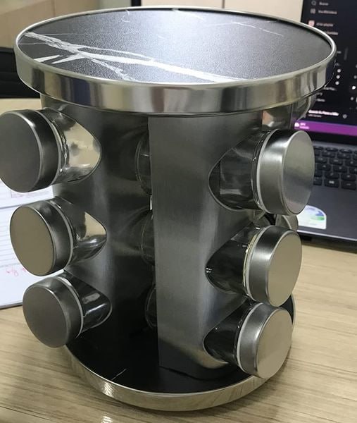 Porta Temperos e Condimentos Giratório Inox Design Mármore Preto