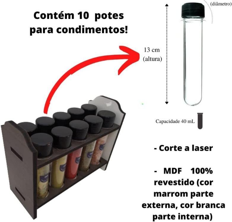 Porta Temperos Madeira 10 Potes Temperos Kit Tempero Cozinha