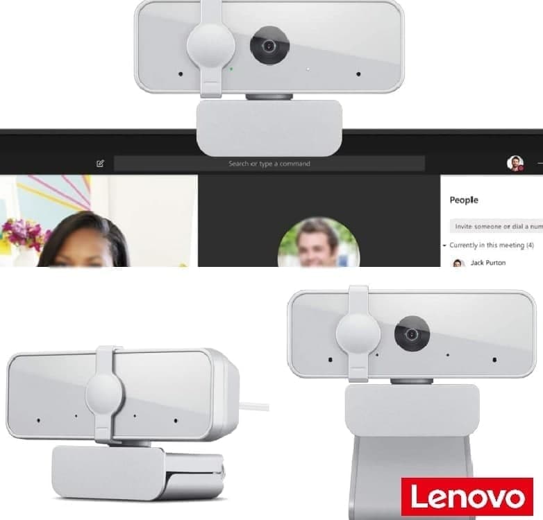 Webcam Lenovo 300 Full HD Com 2 Microfones Integrados 1080p 30fps USB Cinza Claro
