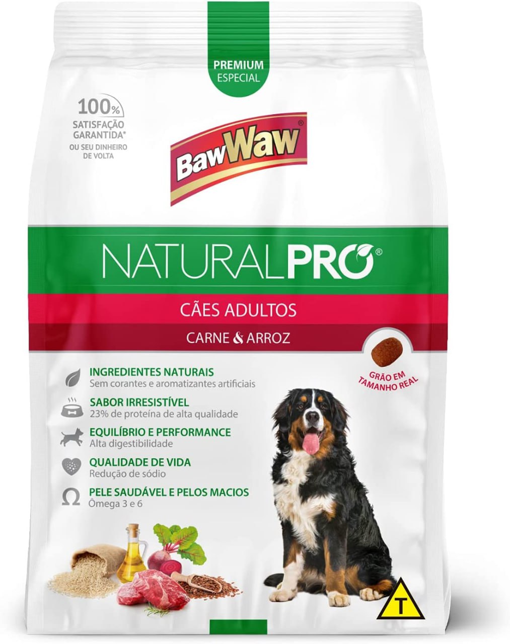 Ração Baw Waw Natural Pro para cães adultos sabor Carne e Arroz – 1kg