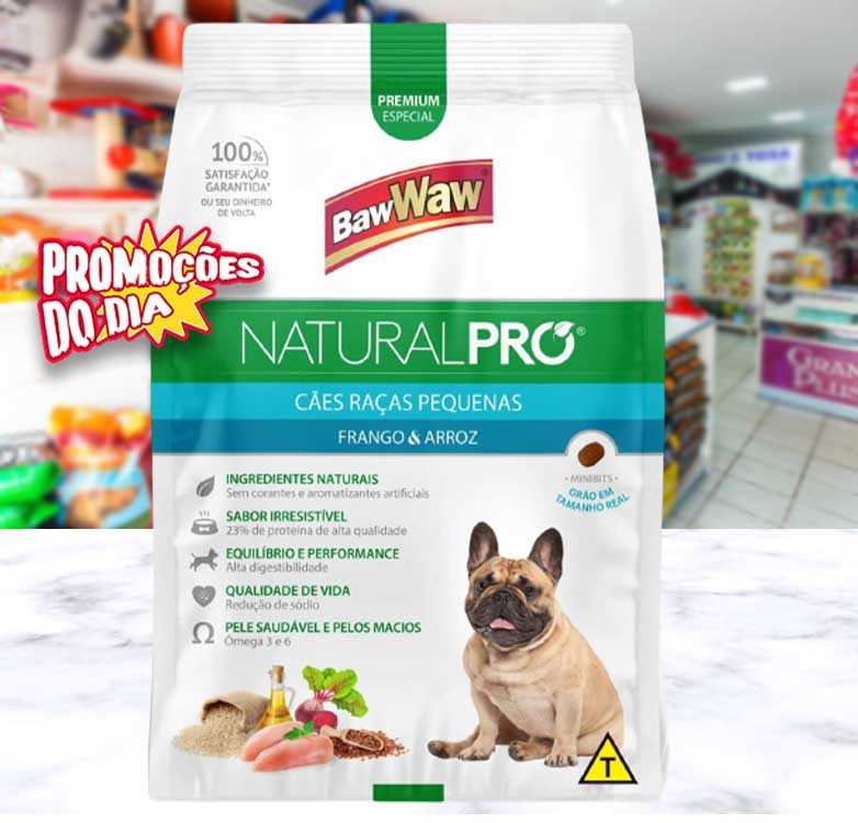 Ração Baw Waw Natural Pro para cães raças pequenas sabor Frango e Arroz – 10,1kg
