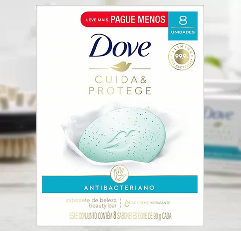 (Recorrência) Pack Sabonete Barra Antibacteriano Dove Cuida & Protege Envoltório 8 Unidades 90g