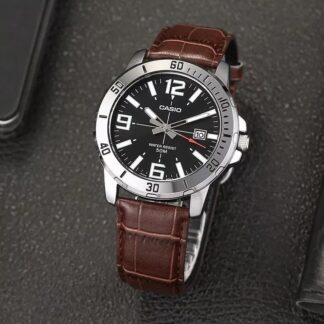 Relógio Masculino Casio Prata e Azul Data Pulseira de Couro