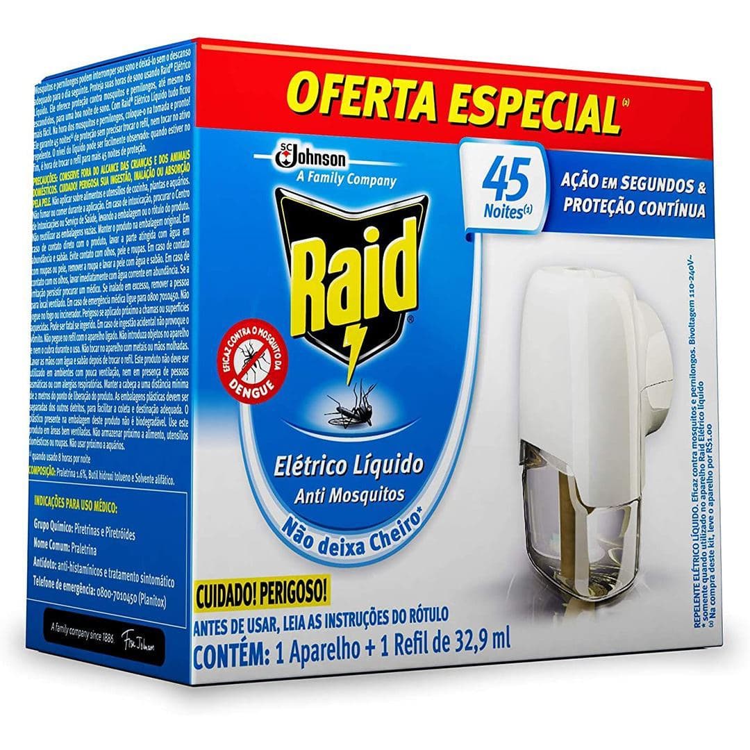 Repelente Elétrico Líquido Raid Anti Mosquitos 1 Aparelho + 1 Refil de 32,9 ml