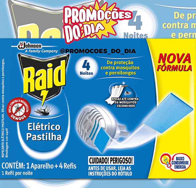 Repelente Elétrico Raid Pastilha com 1 aparelho + 4 refis