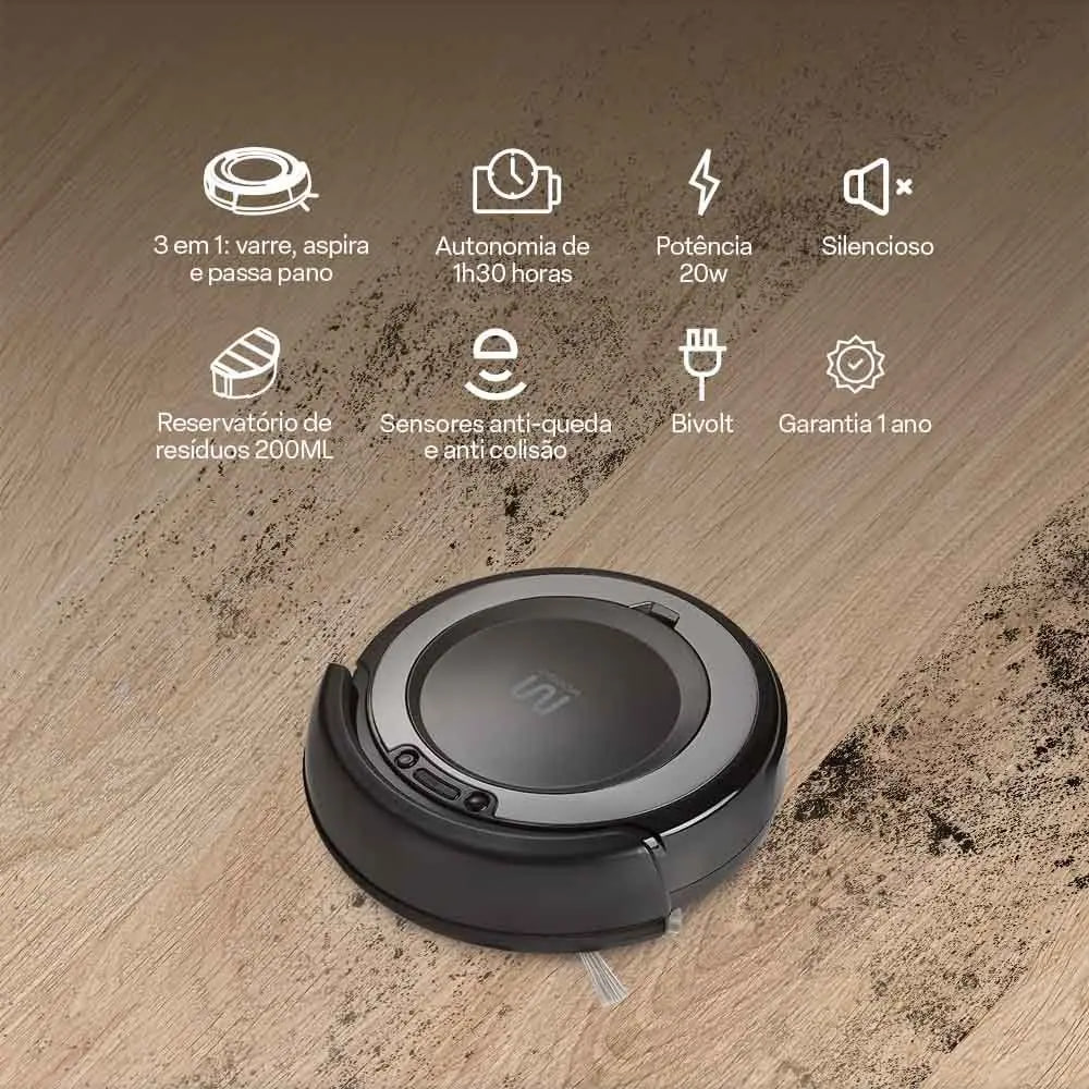 Robô Aspirador Multi Midnight Varre Aspira Passa Pano Ho411 Cor Preto Bivolt