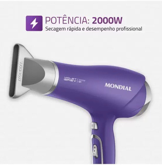 Secador de Cabelo Mondial Tourmaline Íon Lilás – e Prata 2000W 2 Velocidades Violet Grey SCN-05